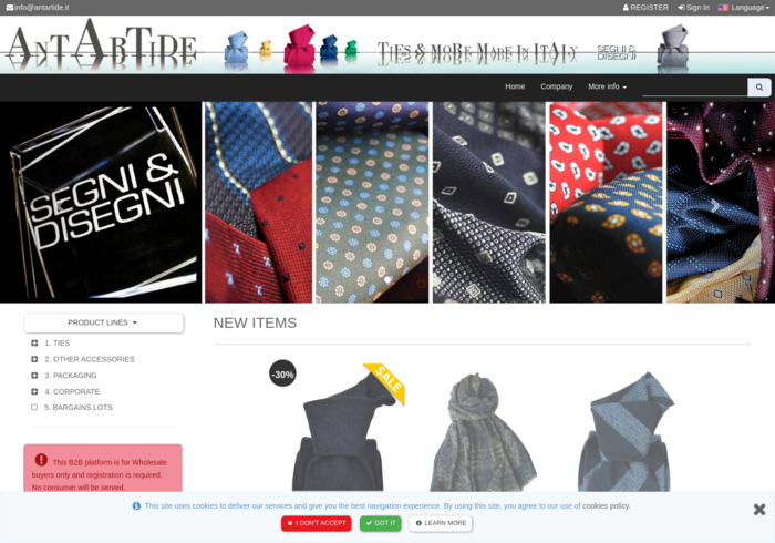 ANTARTIDE is an Italian fashion company manufacturing high quality silk ties and accessories for upscale boutiques. Low minimums at a great value for money